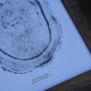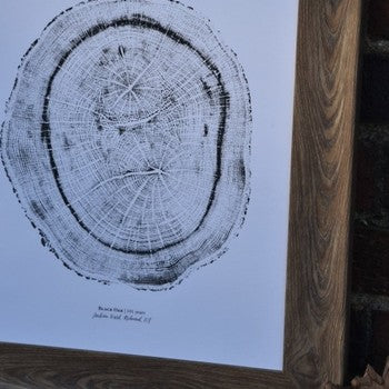 At time of print, tree was aged 101 years, & came from a naturally fallen tree in the Historic Jackson Ward neighborhood in Richmond, Virginia.