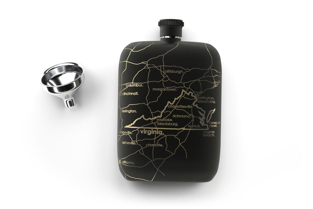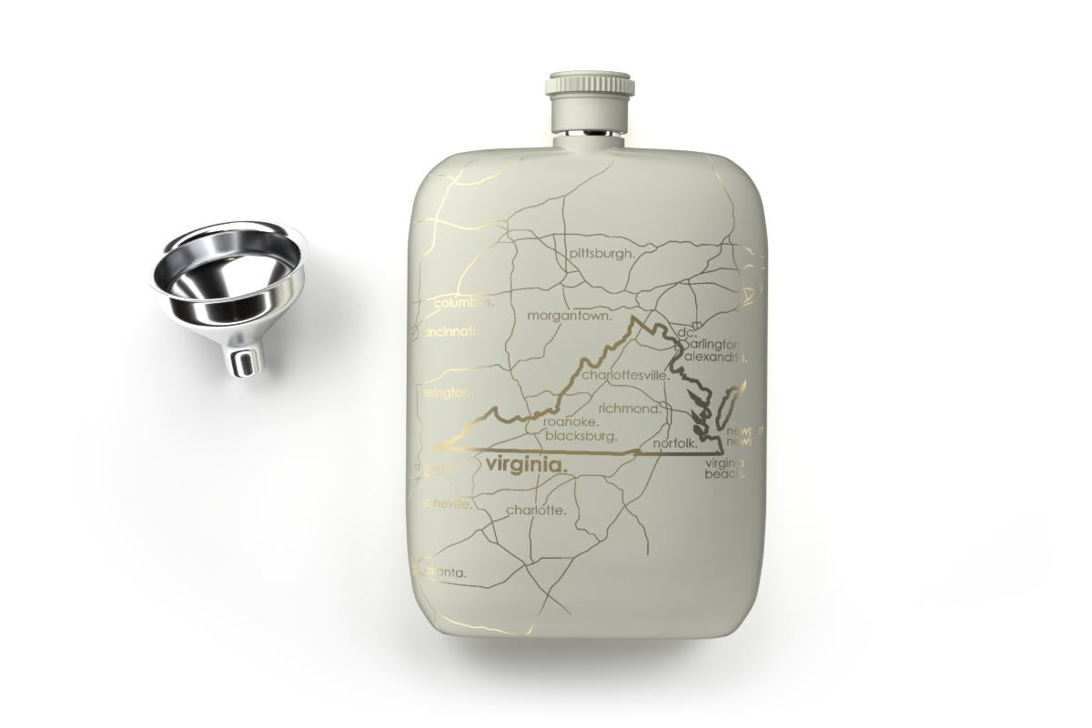 Virginia State Map Pocket Flask With Funnel