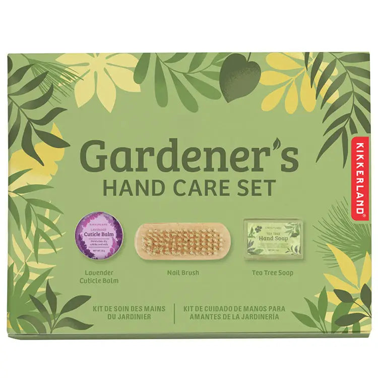 The basic essentials you'll need to care of those gardener's hands! Includes: Lavender cuticle balm, tea tree soap and a nail brush. Design: KDT; Material: lotuswood, boar bristle, cuticle cream, soap; Prod. Dim.: (Nail brush) 9,8 x 3,8 x 3 cm (Soap) 6 x 4 x 1,5 cm (Cuticle cream) dia. 5 x 2,1 cm; Pack. Dim.: 13,1 x 10,1 x 2,9