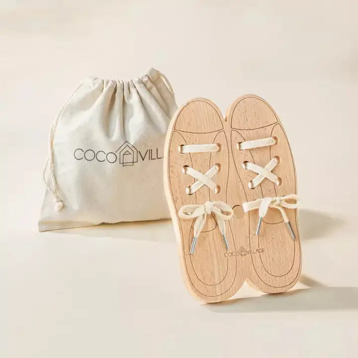 The Wooden Lacing Game is perfect for introducing young children to knots and loops. Easy to carry thanks to its small bag, it's the perfect game to have with you at all times to keep the little ones busy in a fun way.