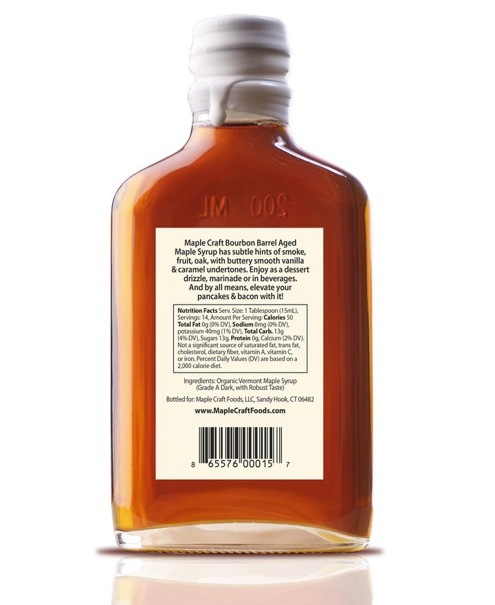 Maple Craft Bourbon Barrel Aged Syrup is the result of patiently aging premium, flame-boiled, single-source maple syrup inside perfectly conditioned American white oak barrels. Barrel-Aged Maple Syrup has a rich, soft, complex character with subtle hints of smoke, fruit & oak, with buttery-smooth vanilla & caramel undertones.