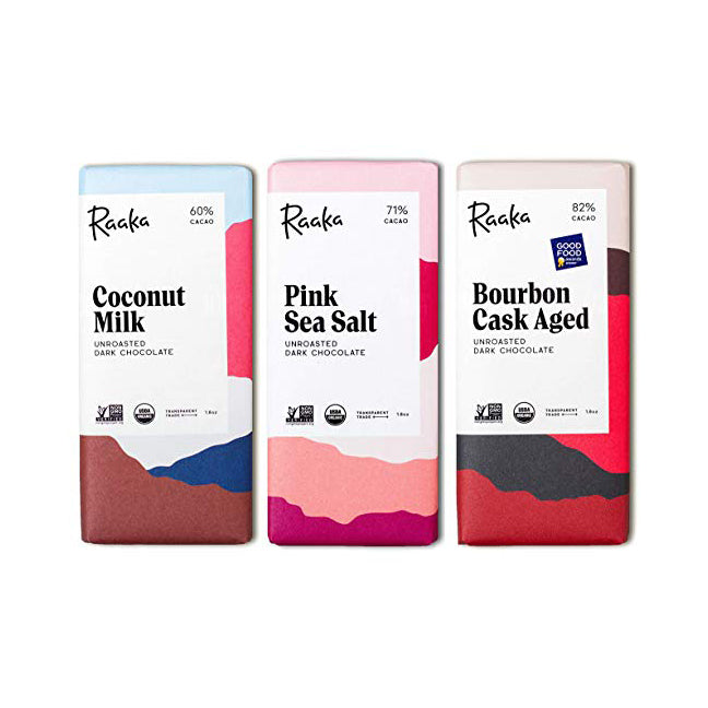 Raaka chocolate is certified organic, certified kosher, vegan, soy free, gluten free, and Non-GMO and made with ethically sourced, transparently traded unroasted cacao.